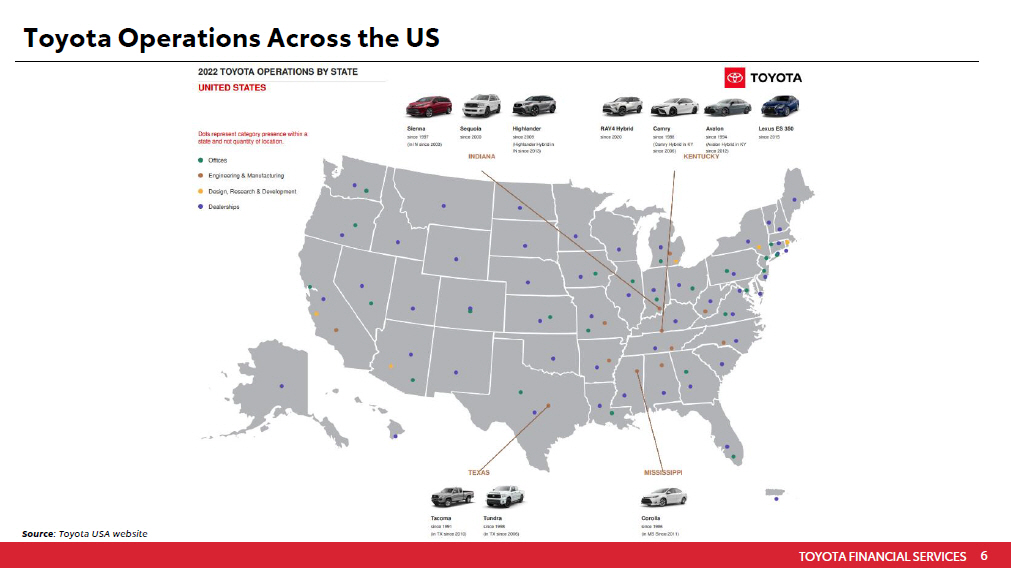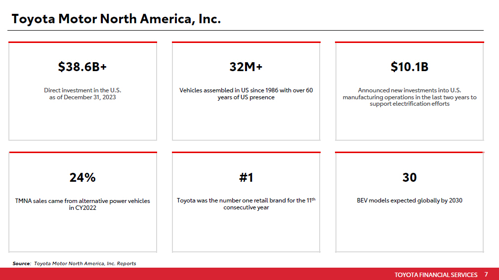 TOYOTA FINANCIAL SERVICES 6 Toyota Operations Across the US Source : Toyota USA website