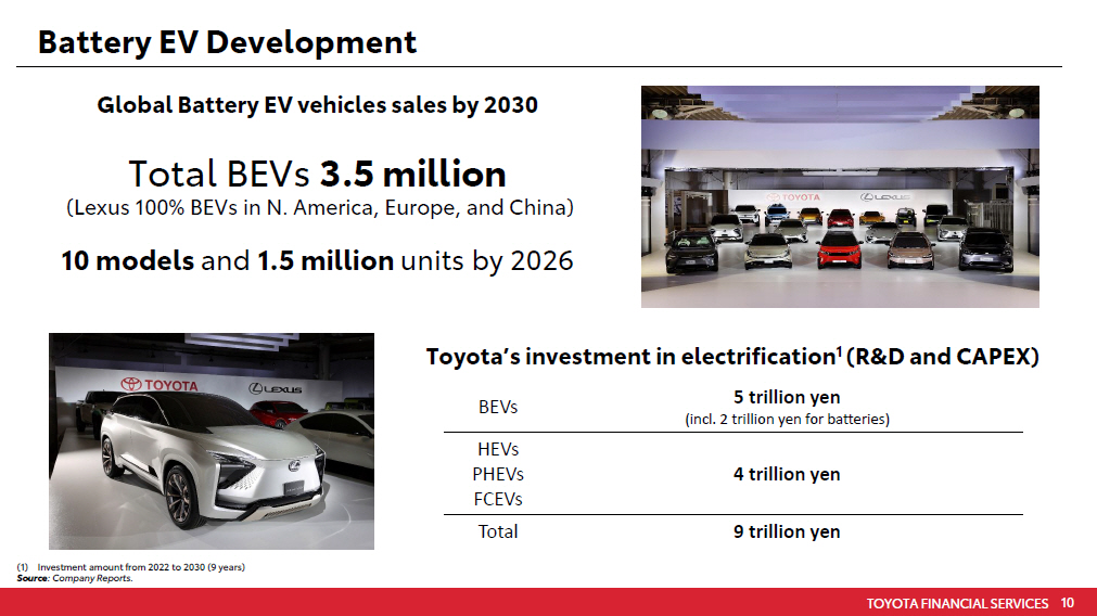 TOYOTA FINANCIAL SERVICES 9 Toyota and Lexus Vehicle Highlights RAV4 (Hybrid/PHEV) Lexus RX (Hybrid/PHEV) Tundra (Hybrid) Prius (Hybrid/PHEV) Sequoia (Hybrid) Venza (Hybrid) Lexus RZ (BEV) bZ4x (BEV)
