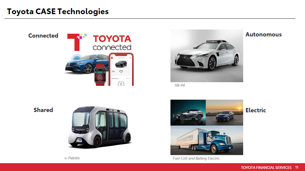 TOYOTA FINANCIAL SERVICES 11 Toyota CASE Technologies TRI - P4 e - Palette Fuel Cell and Battery Electric Connected Autonomous Shared Electric
