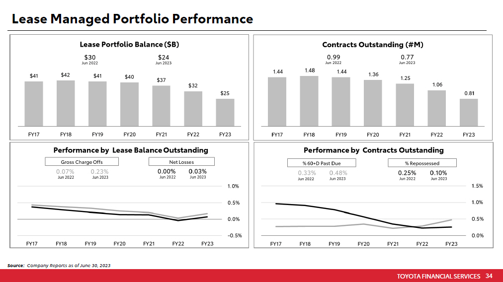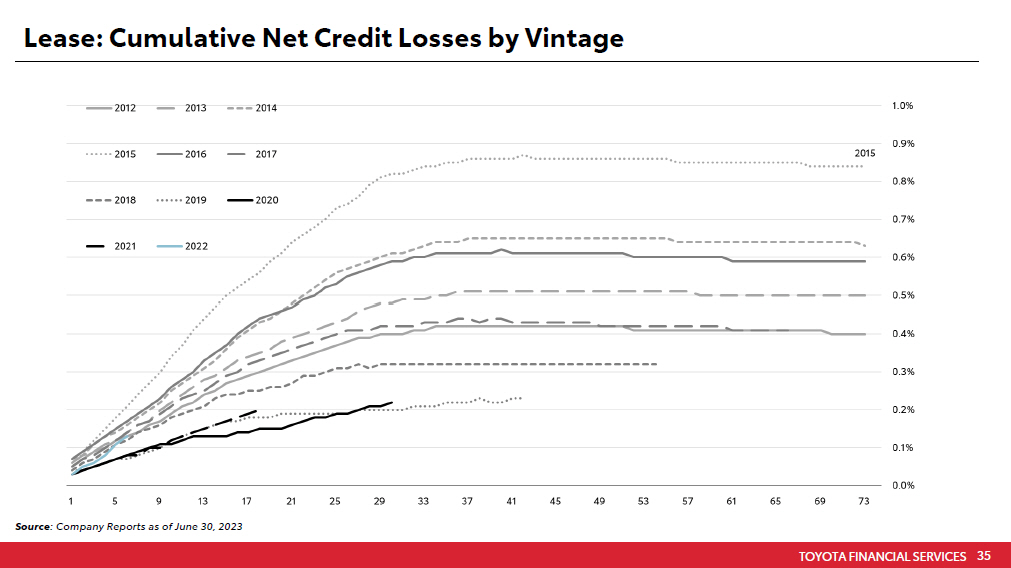 TOYOTA FINANCIAL SERVICES 34 Source: Company Reports as of June 30, 2023 Lease Managed Portfolio Performance